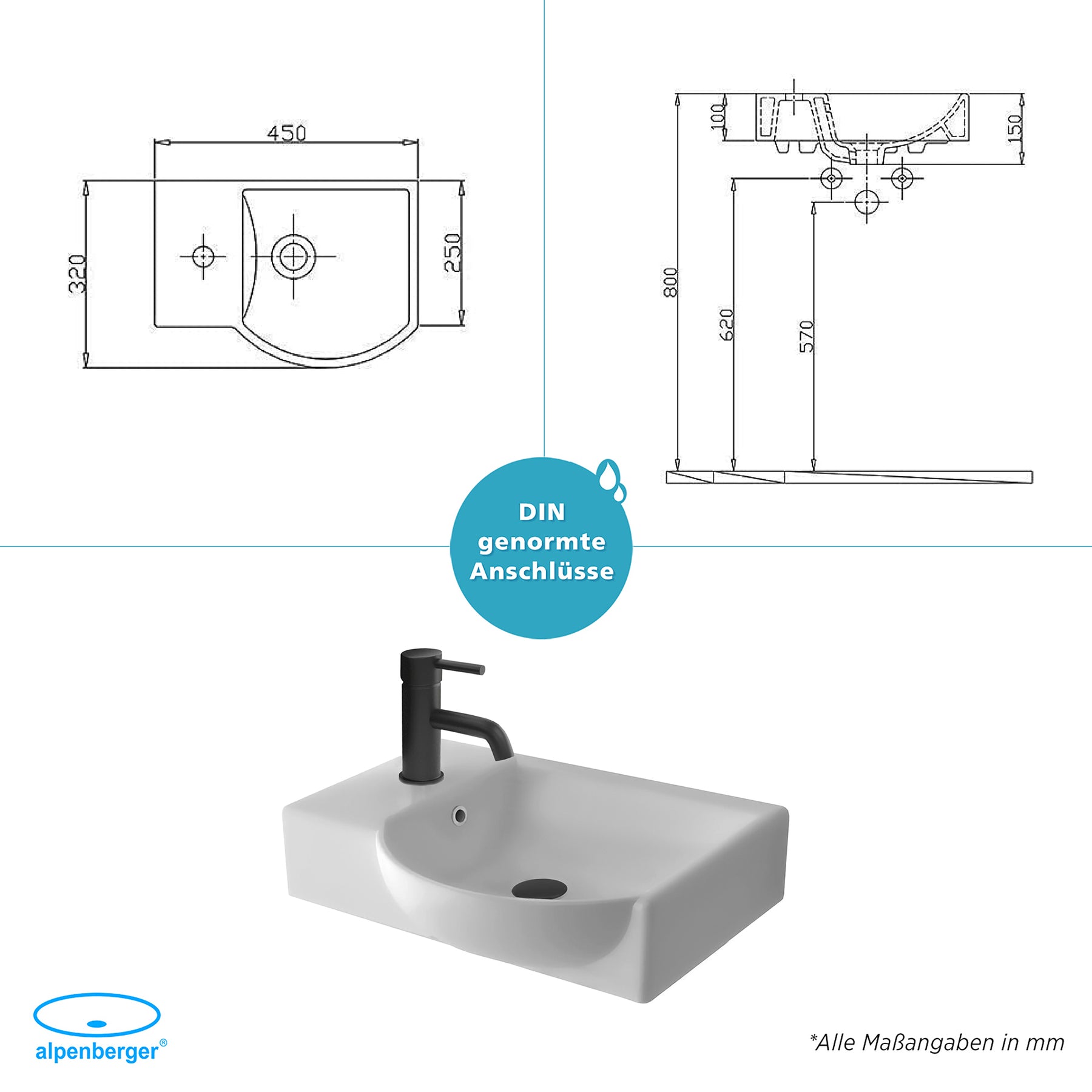 - Lieferumfang: Waschbecken Lugano 450 Rechts in Weiß