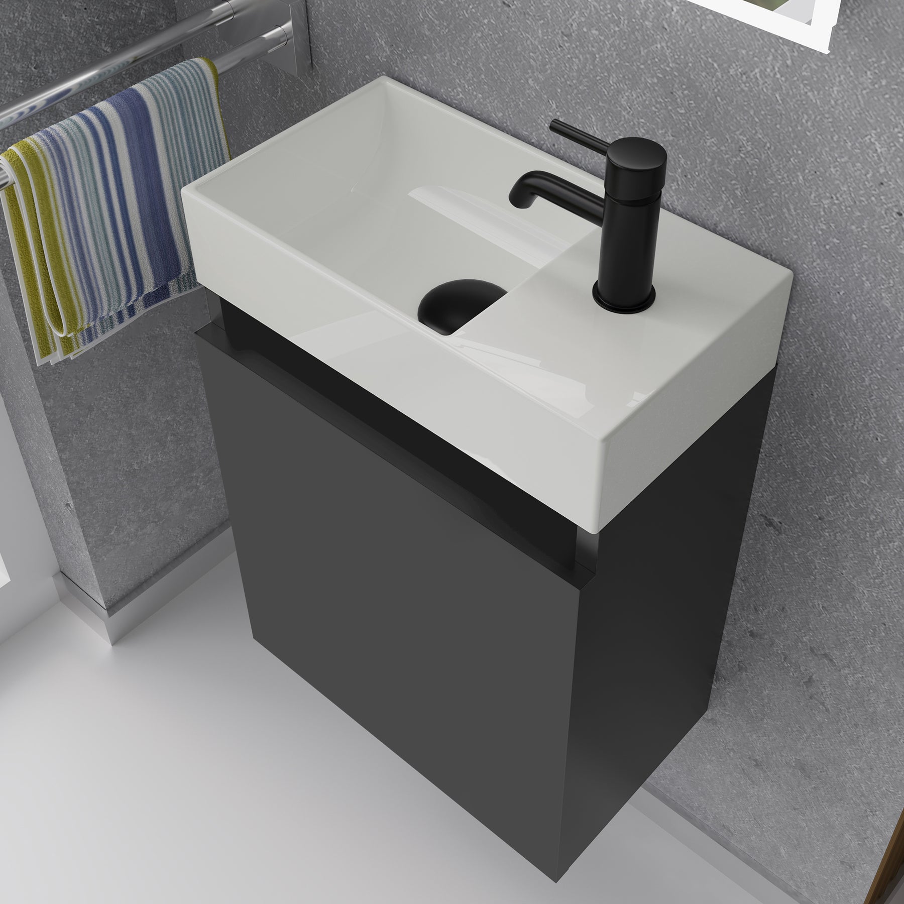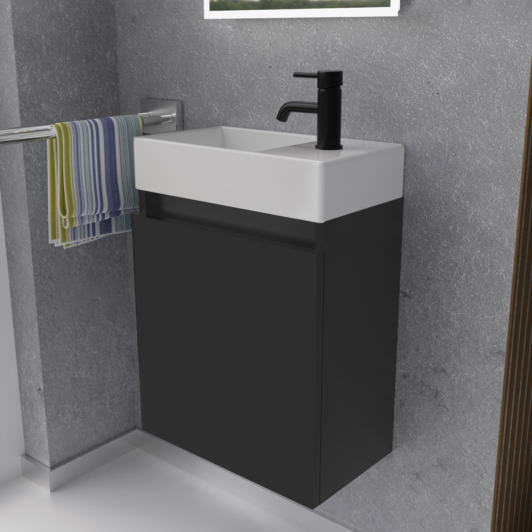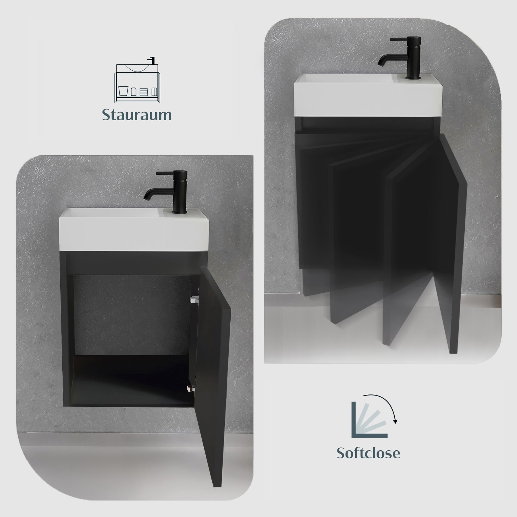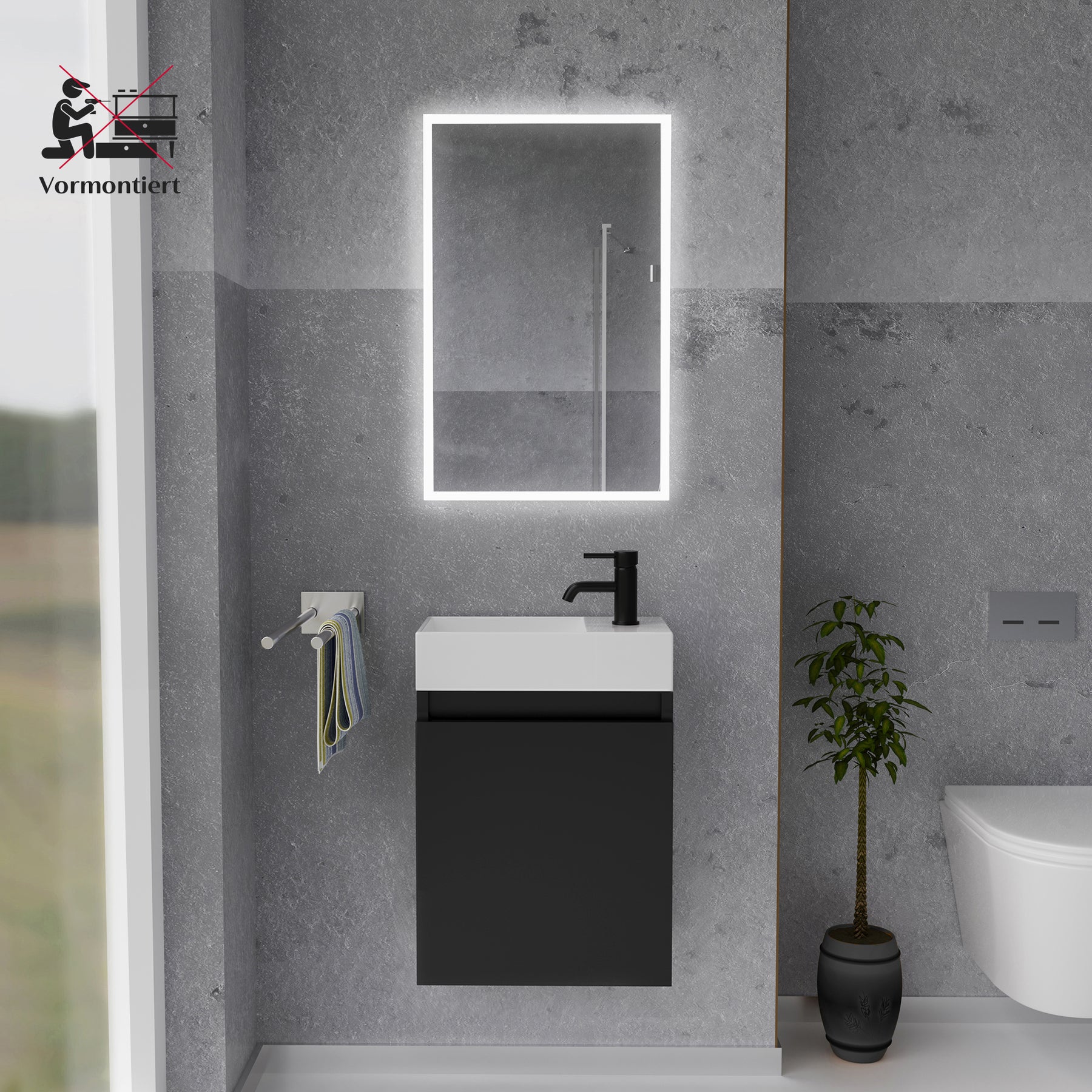 Alpenberger Waschplatz-Set 45 cm – Keramik Waschbecken mit Unterschrank Schwarz Matt