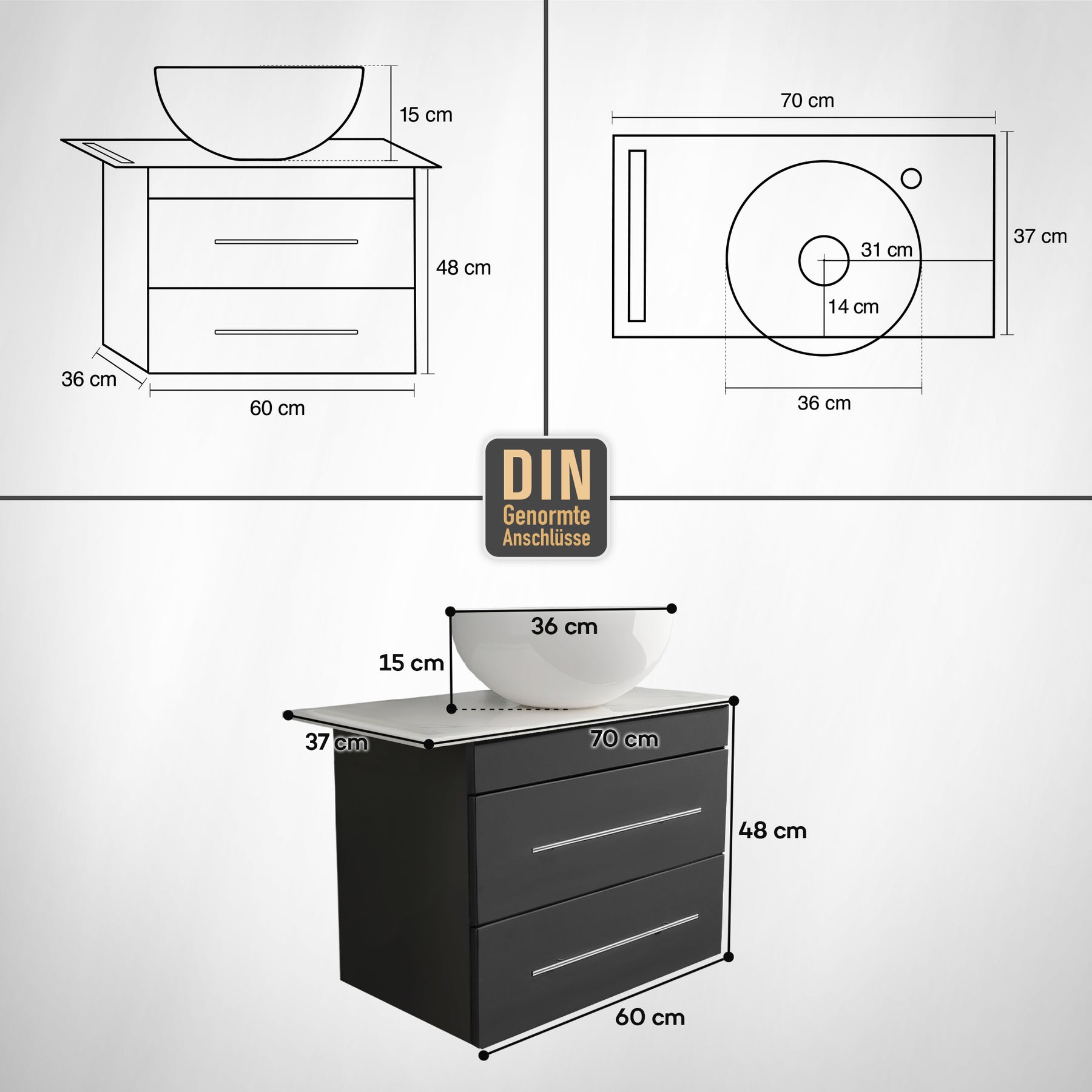 - Waschtischunterschrank mit 2 Schubladen (vormontiert)