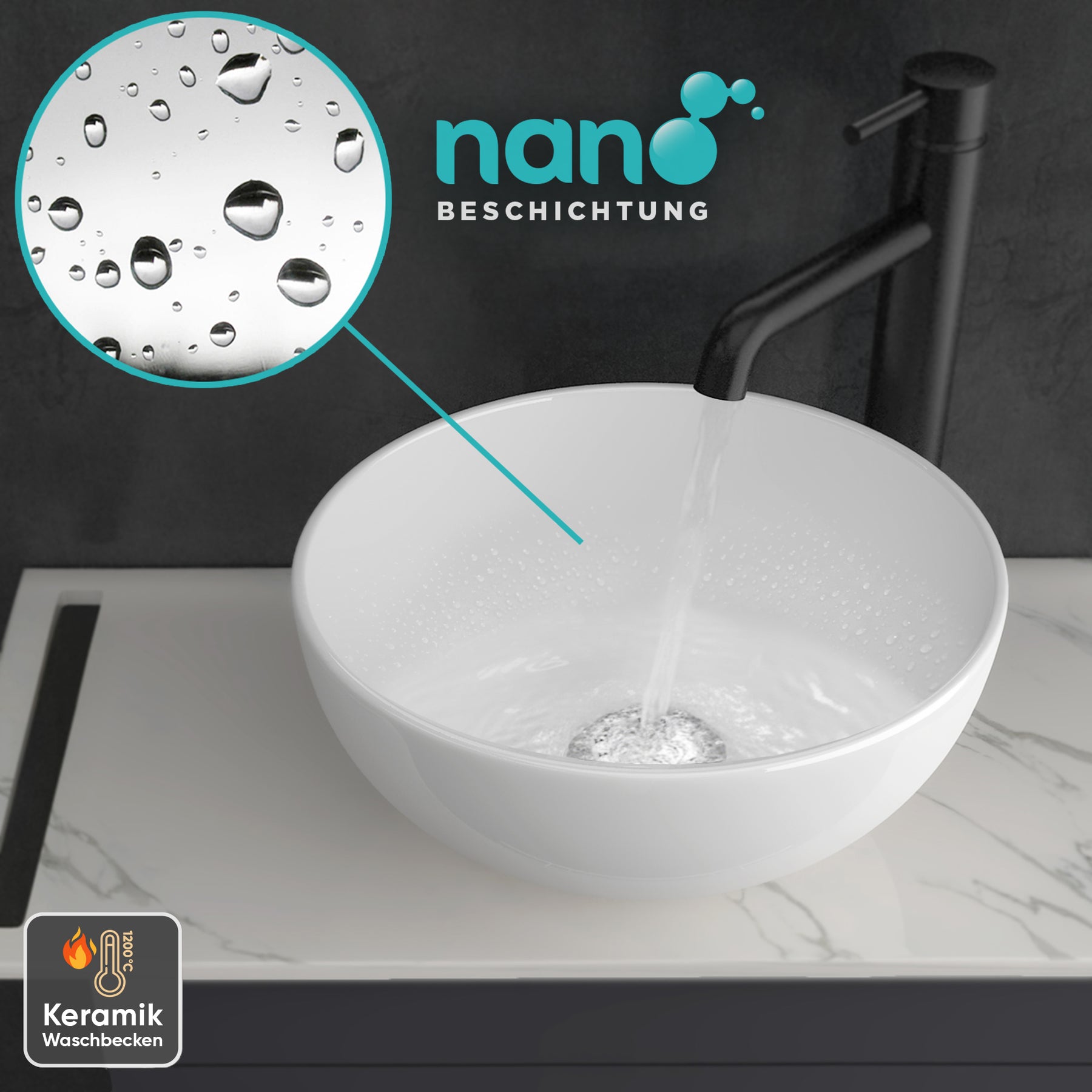 - Hochwertiges Keramikwaschbecken mit pflegeleichter Oberfläche