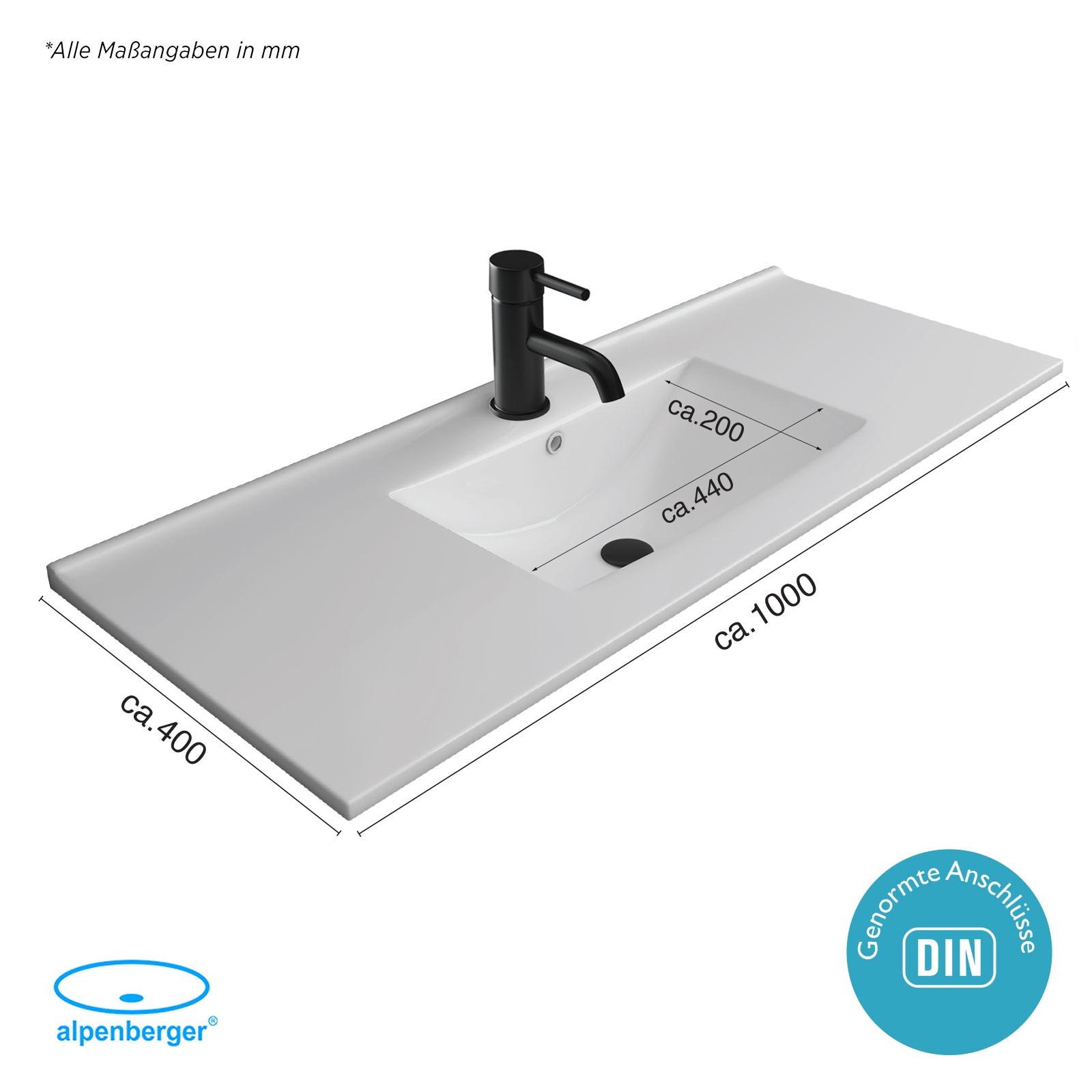 Alpenberger Design Einbauwaschbecken 100 cm – XXL-Waschtisch mit Nano-Beschichtung & maximaler Ablagefläche – Modern & Pflegeleicht