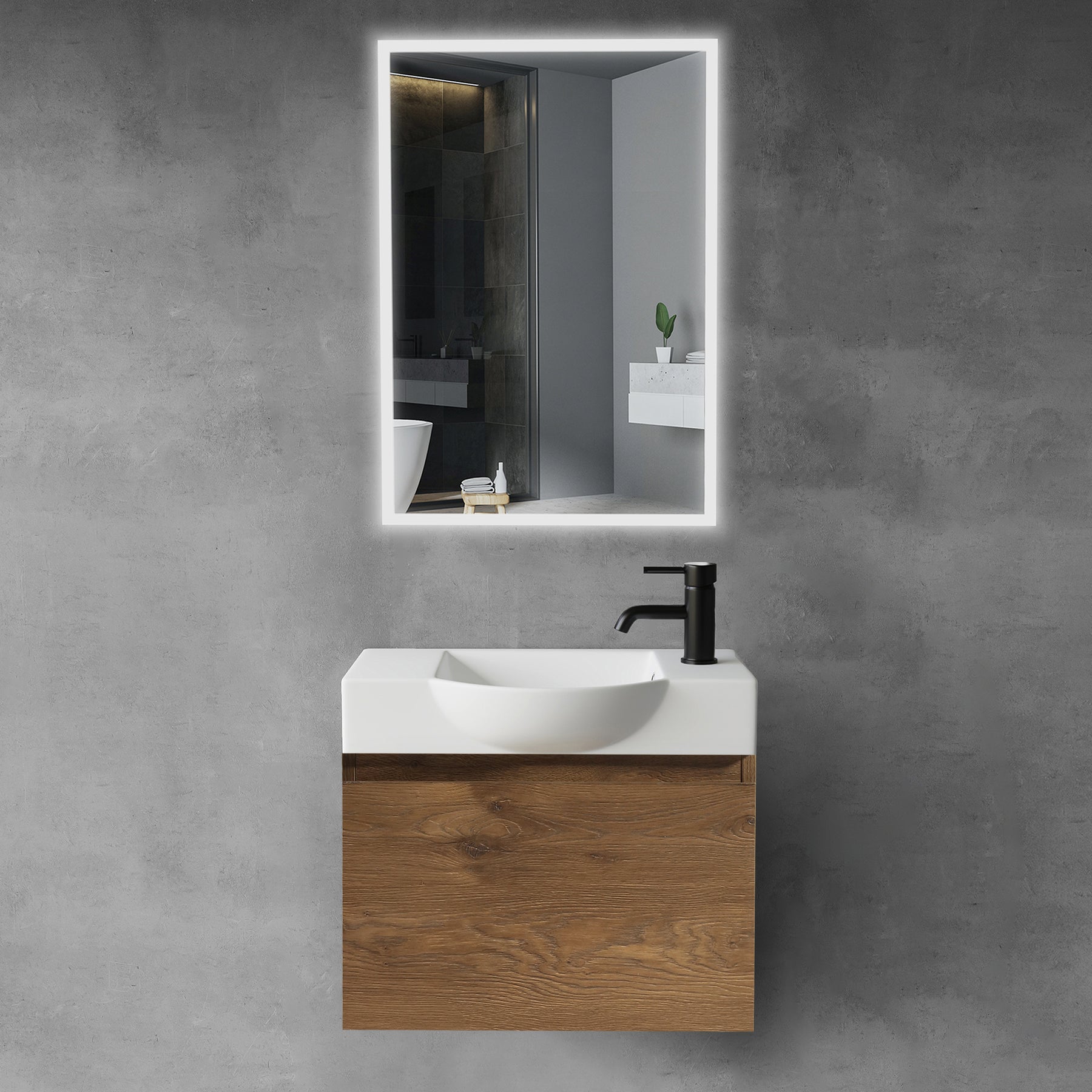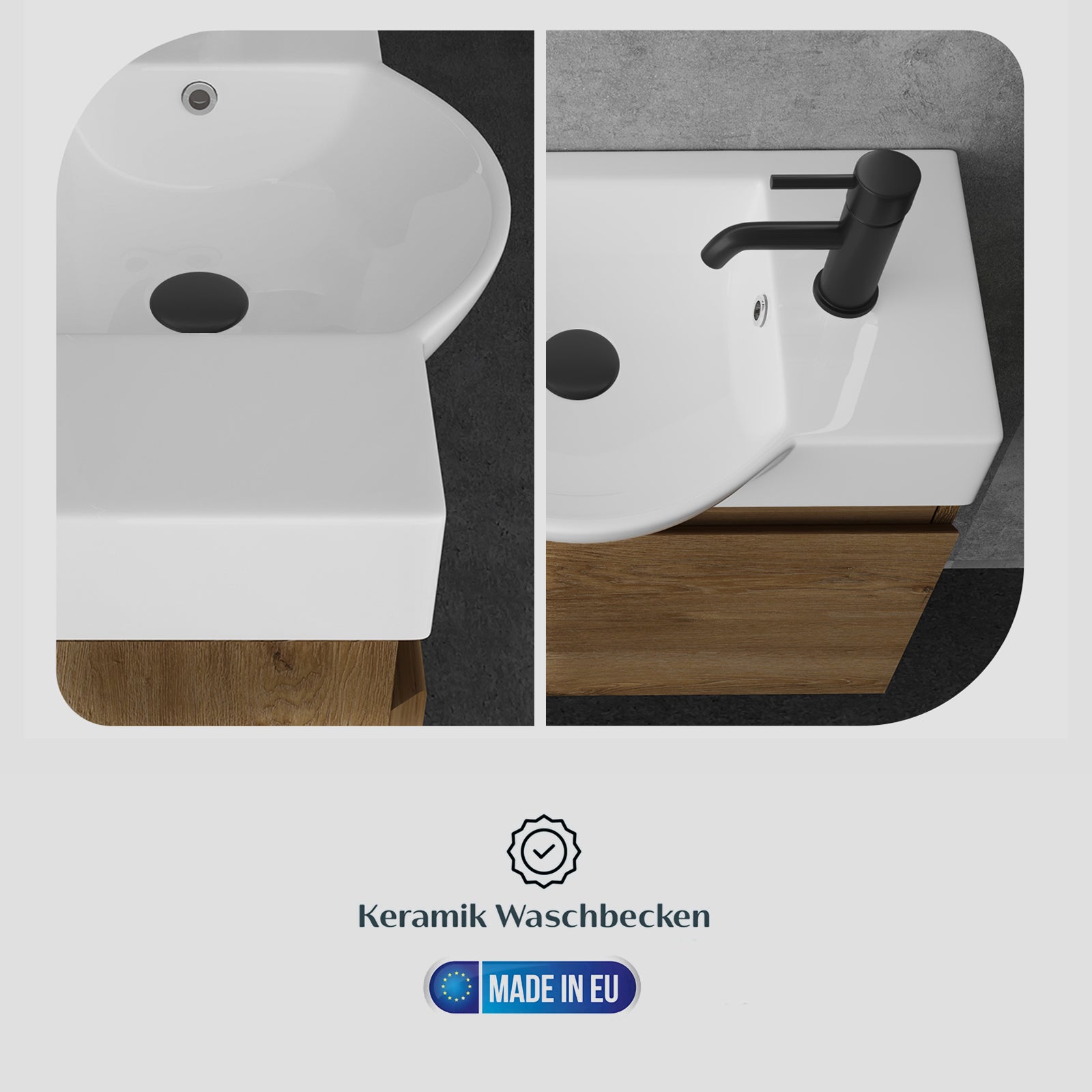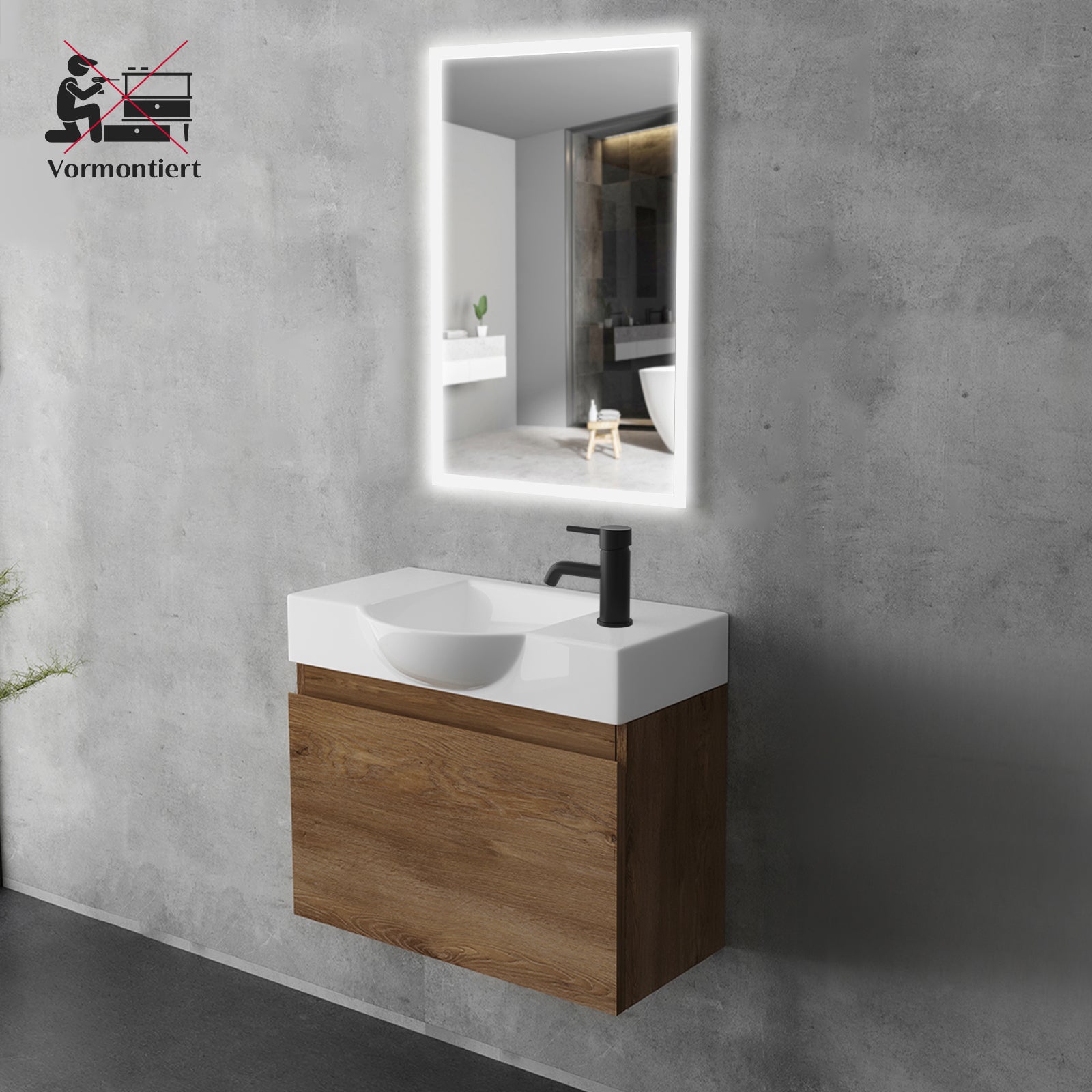 Alpenberger Keramik Waschbecken 55 cm Lugano + Unterschrank KORA 550 mit LED Spiegel – Badmöbel Set