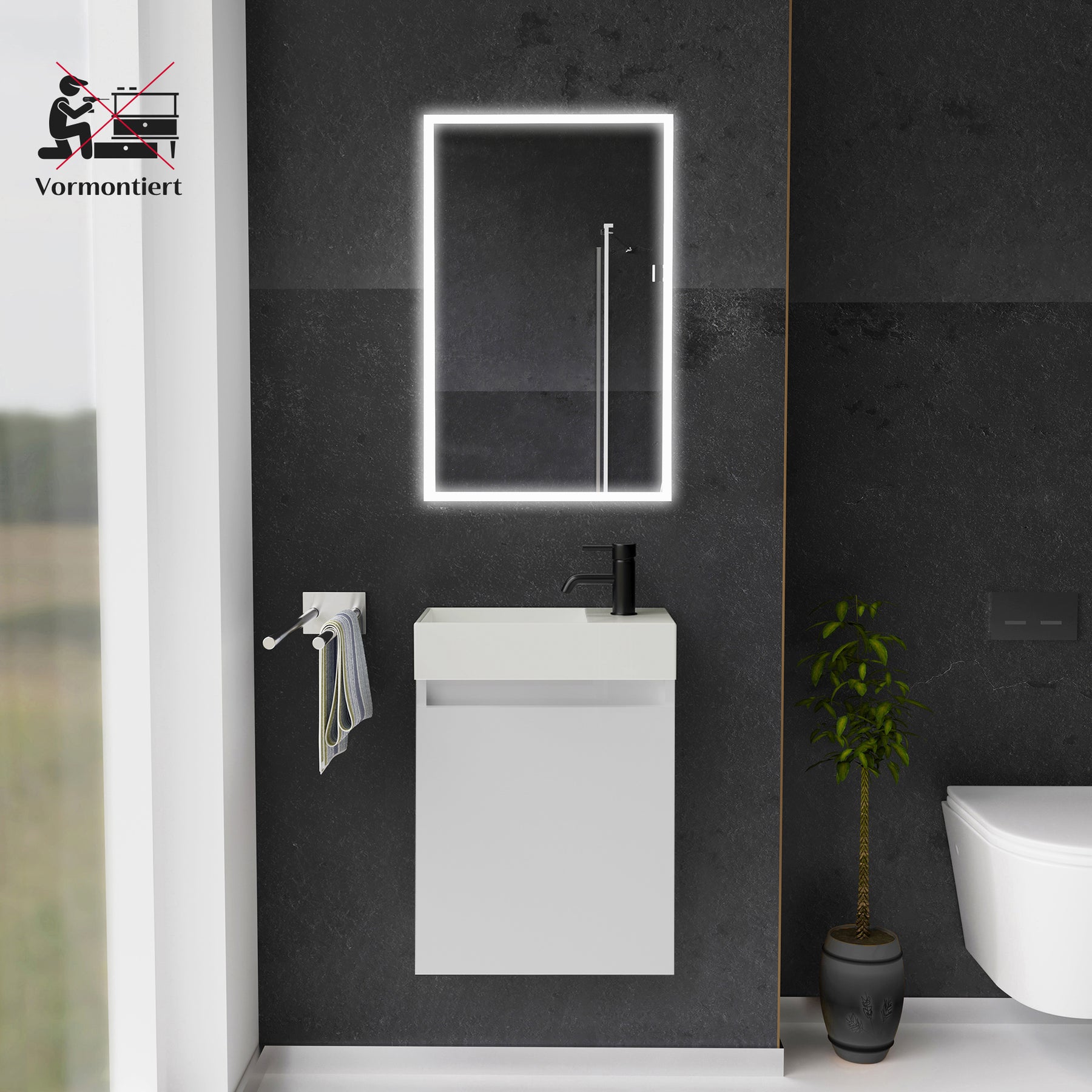 Alpenberger Waschplatz-Set 45 cm – Keramik Waschbecken mit Unterschrank Weiss