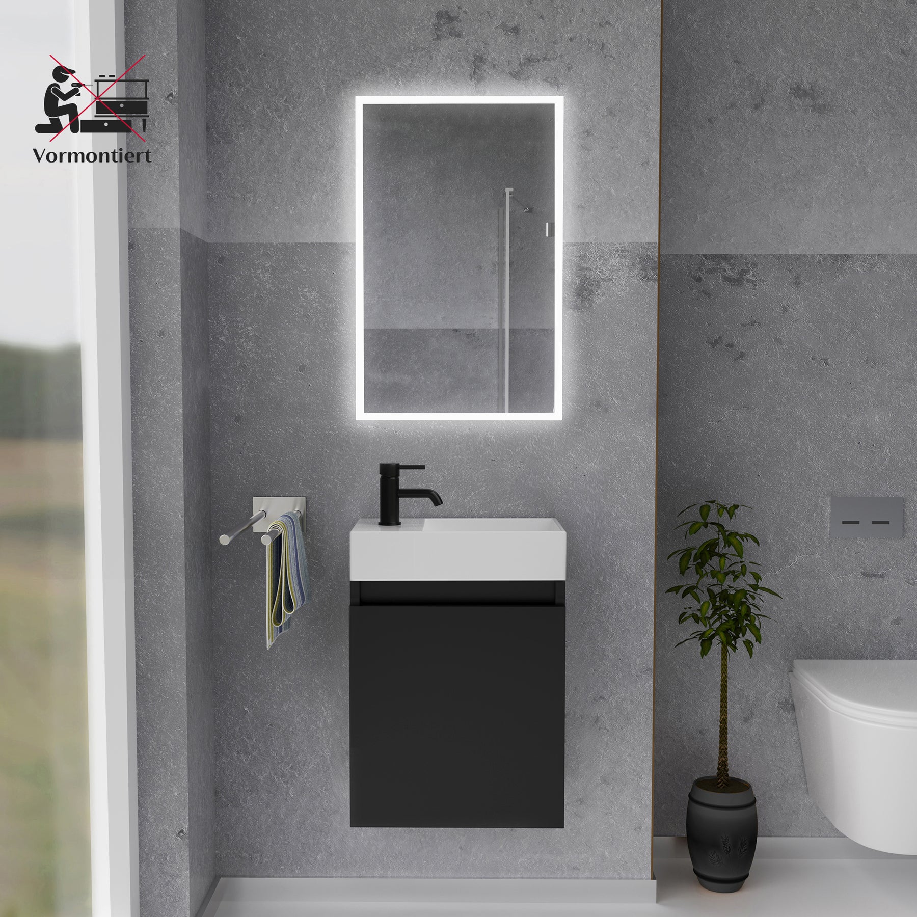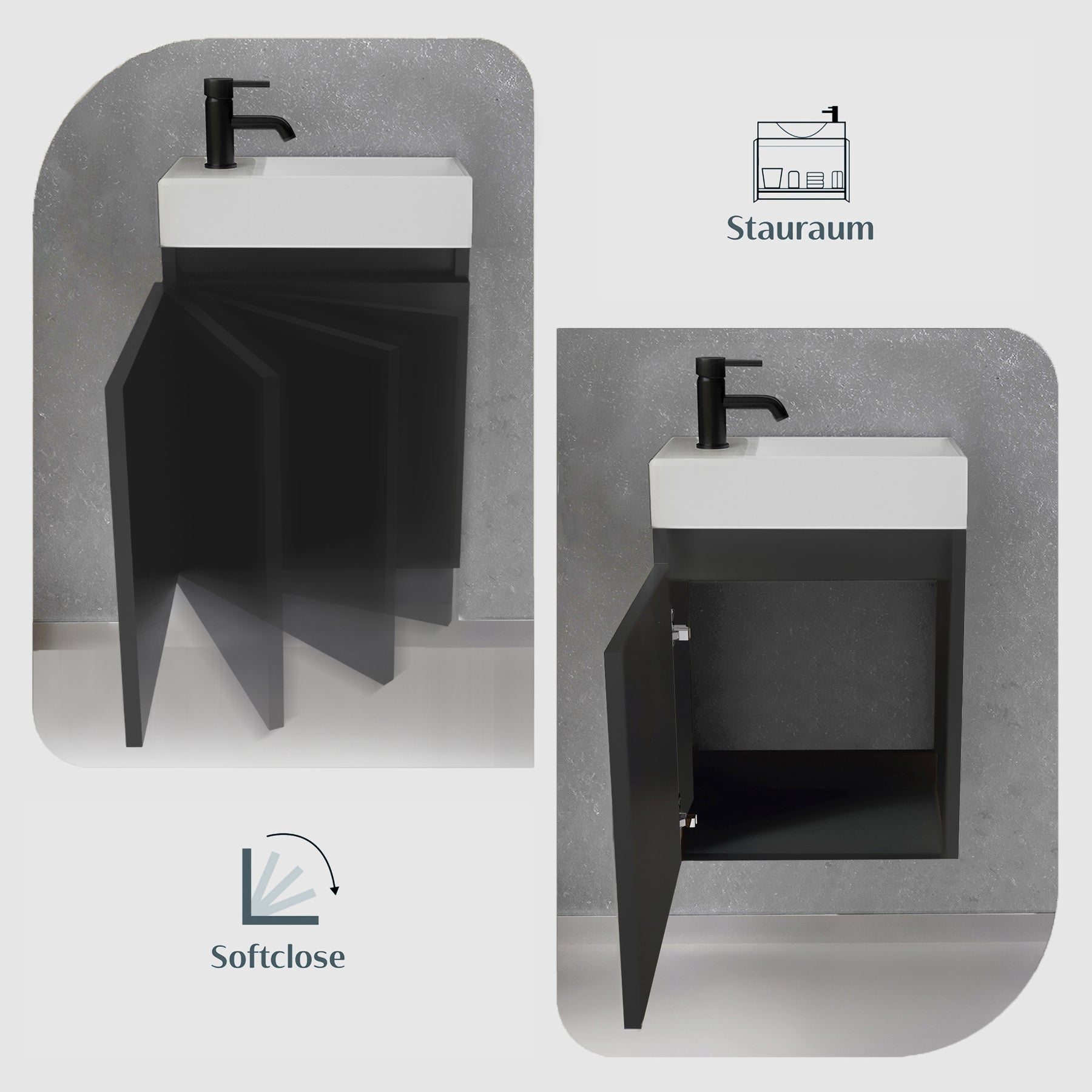 Alpenberger Waschplatz-Set 45 cm – Keramik Waschbecken mit Unterschrank Schwarz Matt