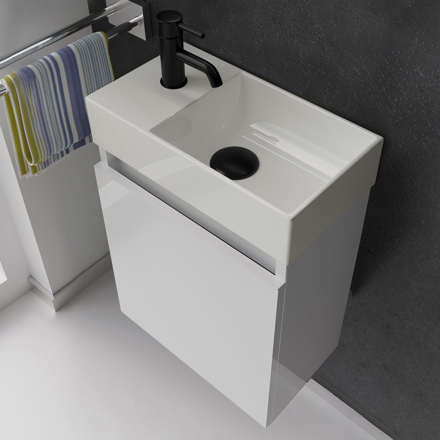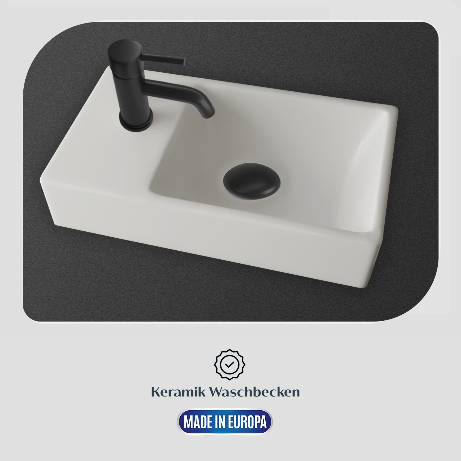 Alpenberger Waschplatz-Set 45 cm – Keramik Waschbecken mit Unterschrank Weiss