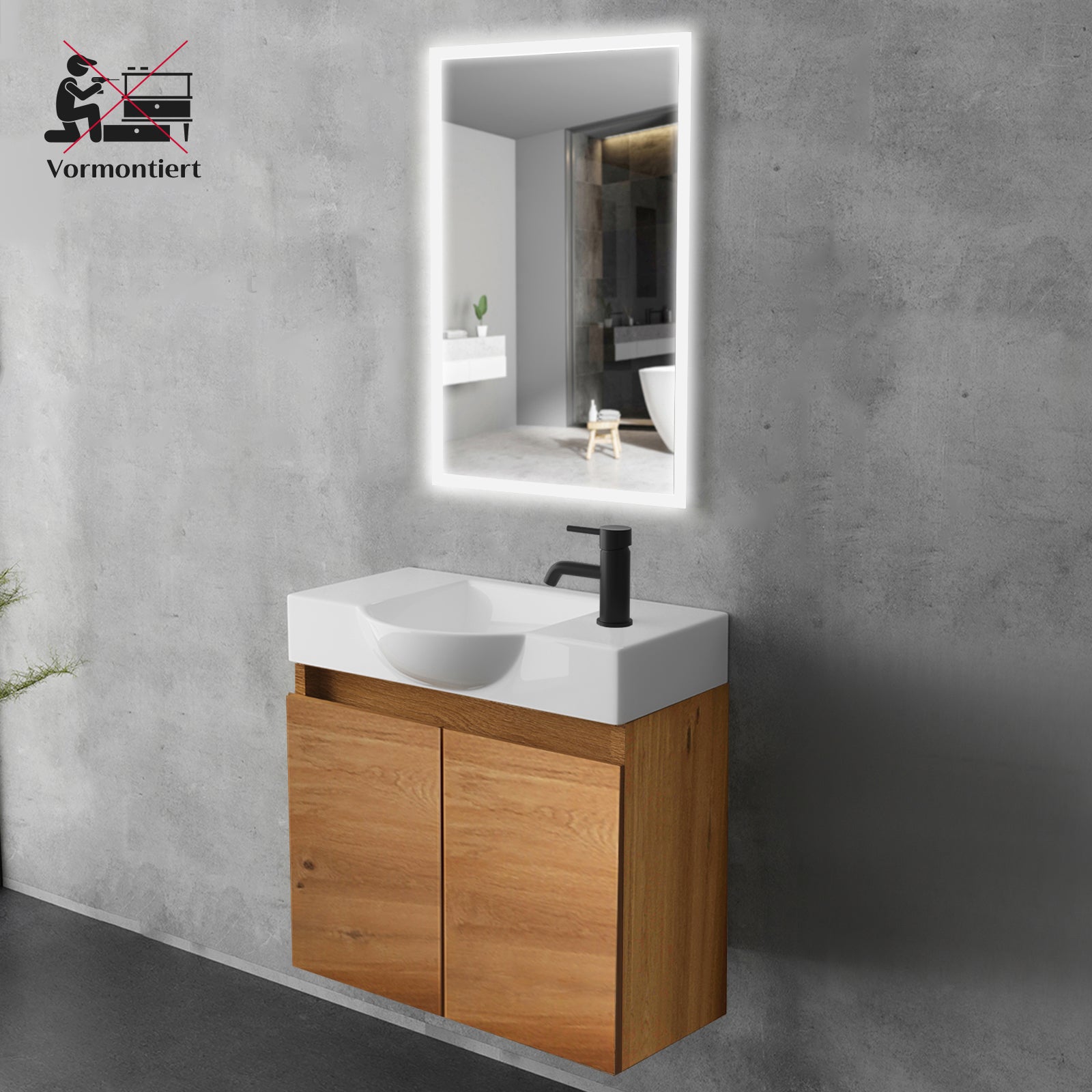 Alpenberger Badmöbel-Set 55 cm – Wandhängend mit Keramik-Waschbecken & Soft-Close