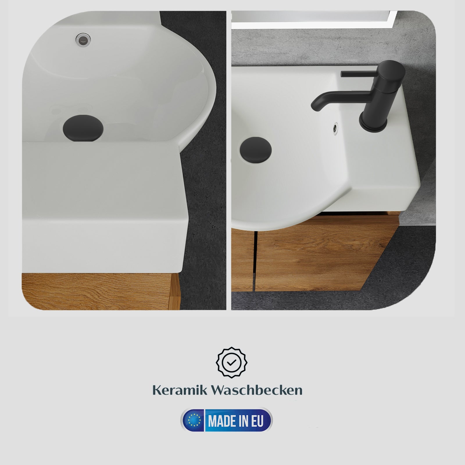 • Made in Europe: Hochwertige Verarbeitung aus Sanitärkeramik sowie langlebigen MDF- und MFC-Holzwerkstoffen – ideal für das feuchte Badklima